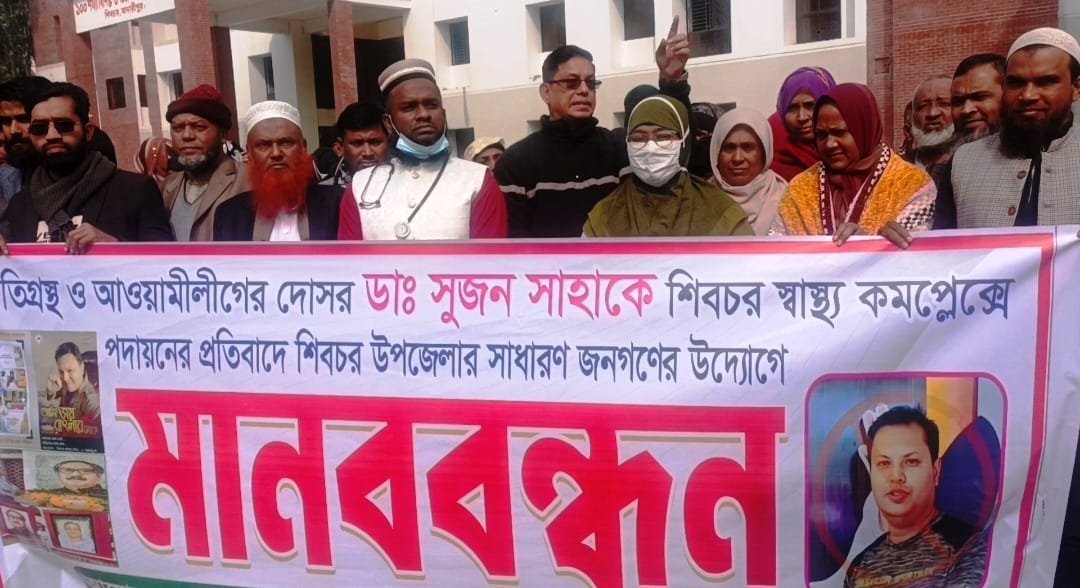 স্থানীয় সূত্রে জানা যায়, ডা. সুজন সাহার বিরুদ্ধে নাগেশ্বরী উপজেলা স্বাস্থ্য কমপ্লেক্সে কর্মরত ও সাবেক কাউখালী উপজেলা স্বাস্থ্য কমপ্লেক্সে স্টাফদের সঙ্গে অসদাচরণ ও বিভিন্ন অনিয়মের অভিযোগে শিবচরে স্থানীয় সাধারণ মানুষ টানা তিন ধরে মানববন্ধন করে আসছে। এছাড়া স্বাস্থ্য কমপ্লেক্সের চিকিৎসক, নার্স ও অন্যান্য কর্মীরা তাঁর যোগদানের বিরোধিতা করে আসছিলেন।