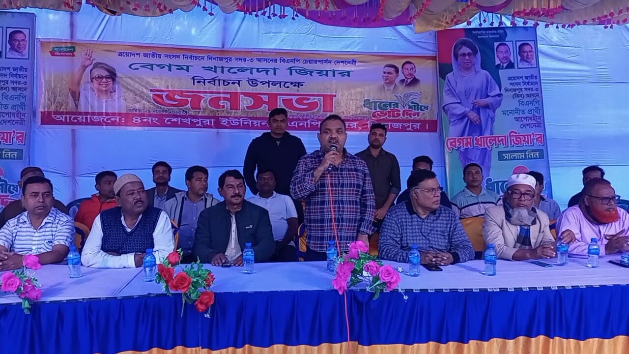 দিনাজপুর সদর উপজেলার শেখপুরা ইউনিয়ন বিএনপি আয়োজিত নির্বাচনী জনসভায় দেশনেত্রী বেগম খালেদা জিয়ার রোগমুক্তি কামনায় বিশেষ দোয়া অনুষ্ঠিত হয়েছে। এর আগে বিশাল জনসভায় প্রধান অতিথি দিনাজপুর জেলা বিএনপির সভাপতি অ্যাডভোকেট মোফাজ্জল হোসেন দুলাল ও প্রধান বক্তা হিসেবে জেলা বিএনপির সাধারণ সম্পাদক বখতিয়ার আহমেদ কচি বক্তব্য রাখেন।
