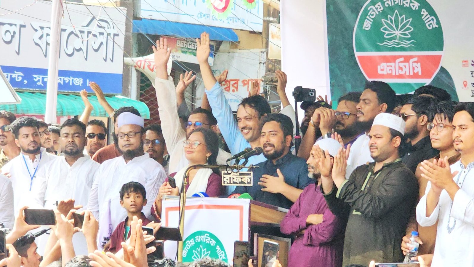 এনসিপি’র সুনামগঞ্জ জেলা কমিটি’র আহবায়ক সাজাউর রাজা সুমনের সভাপতি অনুষ্ঠিত পথসভায় বক্তব্য রাখেন এনসিপির কেন্দ্রিয় নেতা আক্তার হোসেন, এনসিপির উত্তারঞ্চলের মুখ্য সমন্বয় সারজিস আলম, দক্ষিনাঞ্চলের মুখ্য সমন্বয় হাসনাত আব্দুল্লাহ, ডাঃ তাছনিম জারা ও সুনামগঞ্জে এনসিপির নেতা অনিক রায় প্রমুখ।