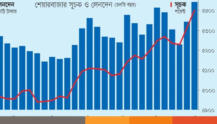 শেয়ার কেনাবেচার পরিমাণও আগের দিনের তুলনায় ১৪৪ কোটি টাকা বেড়ে ৭৯০ কোটি টাকা ছাড়িয়েছে। এ লেনদেন গত বছরের ১০ সেপ্টেম্বরের পর বা সর্বশেষ ৫ মাসের সর্বোচ্চ।