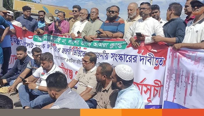 সড়ক সংস্কারের দাবিতে কুমিল্লা-সিলেট মহাসড়ক অবরোধ করে বিক্ষোভ