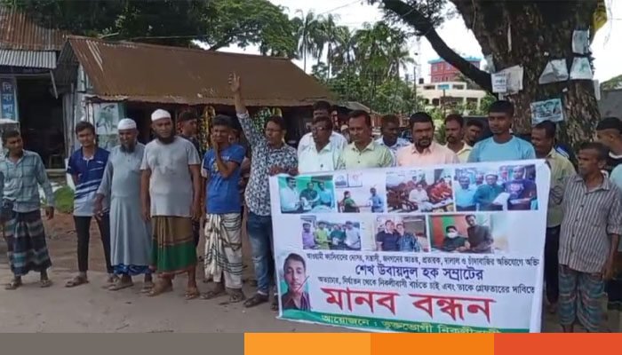 মানববন্ধনে ফ্যাসিস্ট আওয়ামী লীগের দোসর সন্ত্রাসী ও চাঁদাবাজীর অভিযোগেশেখ উবায়দুল হক সম্রাটকে গ্রেপ্তারের দাবি জানান তারা।