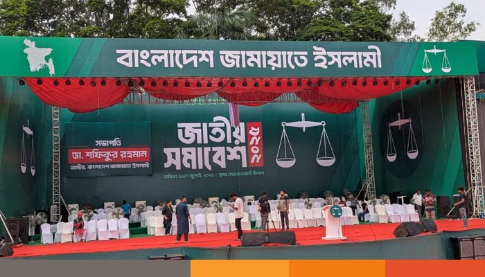 সাত দফা দাবি আদায়ের লক্ষ্যে রাজধানীর ঐতিহাসিক সোহরাওয়ার্দী উদ্যানে জামায়াতের জাতীয় সমাবেশে লাখ লাখ মানুষের ঢল নেমেছে। সমাবেশ শুরুর ৬ ঘণ্টা আগেই দলটির নেতাকর্মী ও সমর্থকদের উপস্থিতিতে প্রায় কানায় পরিপূর্ণ হয়ে গেছে সোহরাওয়ার্দী উদ্যান। এছাড়া সোহরাওয়ার্দী উদ্যানের বাইরে হাজার হাজার জামায়াতের নেতাকর্মী অবস্থান করছে।