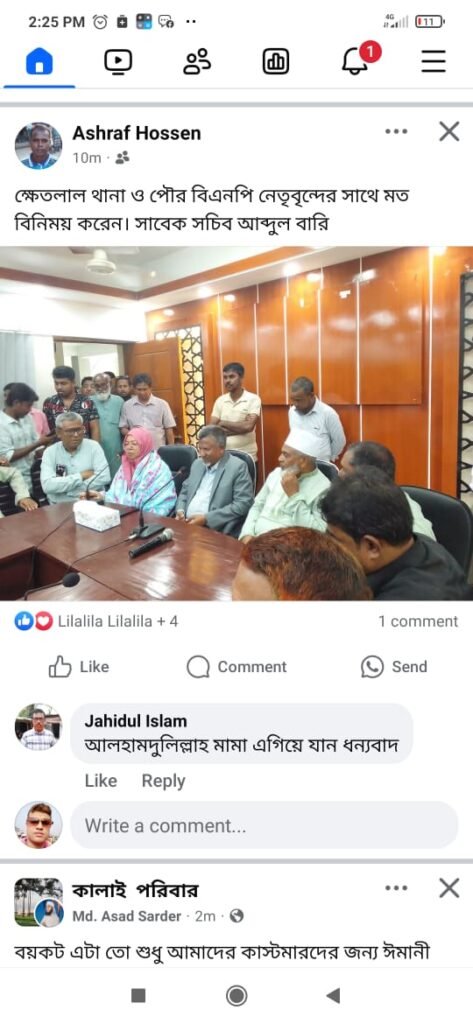 এ বিষয়ে জানতে চাইলে সাবেক প্রশাসনের কর্মকর্তা (ছিলেন সাবেক সচিব) আব্দুল বারী বলেন, সাধারণ জনগণ ও স্থানীয় রাজনৈতিক নেতৃবৃন্দকে নিয়ে ঈদ পুনর্মিলনী ও মতবিনিময় করেছি। সেখানে কোনো ধরনের প্রচারণা হয়নি, আমি শুধু উপস্থিত ছিলাম।