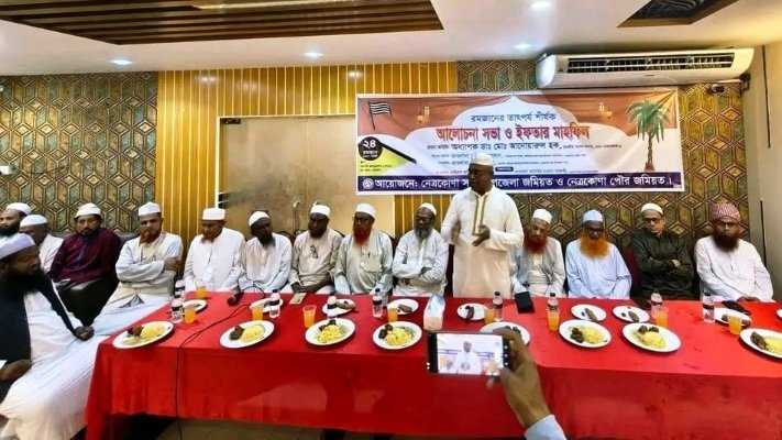 নেত্রকোনা বড় বাজারস্থ সালতি কনভেনশন সেন্টারে শনিবার (১৪ মার্চ) নেত্রকোনা সদর উপজেলা জমিয়ত ও নেত্রকোনা পৌর জমিয়তের উদ্যোগে ‘রমজানের তাৎপর্য’ শীর্ষক আলোচনা সভা ও ইফতার মাহফিল অনুষ্ঠিত হয়েছে। অনুষ্ঠানে প্রধান অতিথি হিসেবে উপস্থিত ছিলেন নেত্রকোনা-১ (সদর-বারহাট্টা) আসনের সংসদ সদস্য ও জেলা বিএনপি’র সভাপতি অধ্যাপক ডা. আনোয়ারুল হক।