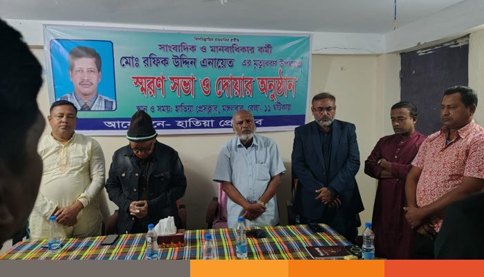 হাতিয়ায় বিশিষ্ট সাংবাদিক ও মানবাধিকার কর্মী মরহুম মোঃ রফিক উদ্দিন এনায়েতের মৃত্যুতে এক স্মরণসভা ও দোয়া মাহফিল অনুষ্ঠিত হয়েছে। হাতিয়া প্রেস ক্লাবের আয়োজনে অনুষ্ঠিত এ অনুষ্ঠানে সভাপতিত্ব করেন প্রেস ক্লাবের সভাপতি মোঃ ফিরোজ উদ্দিন।