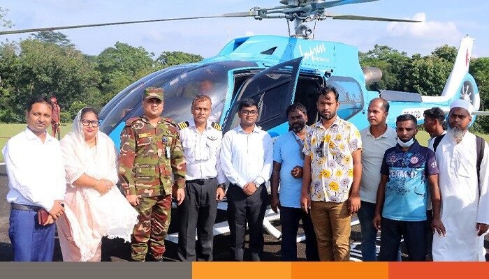 বেসামরিক এয়ার অ্যাম্বুলেন্স (S2-AGO) বিকেল ৩টা খাগড়াছড়ি সেনানিবাসের হেলিপ্যাডে অবতরণ করে। পরবর্তীতে বিকেল ৩টা ১৫ মিনিটে মরদেহ নিয়ে গাইবান্ধার উদ্দেশ্যে রওনা হয়।
