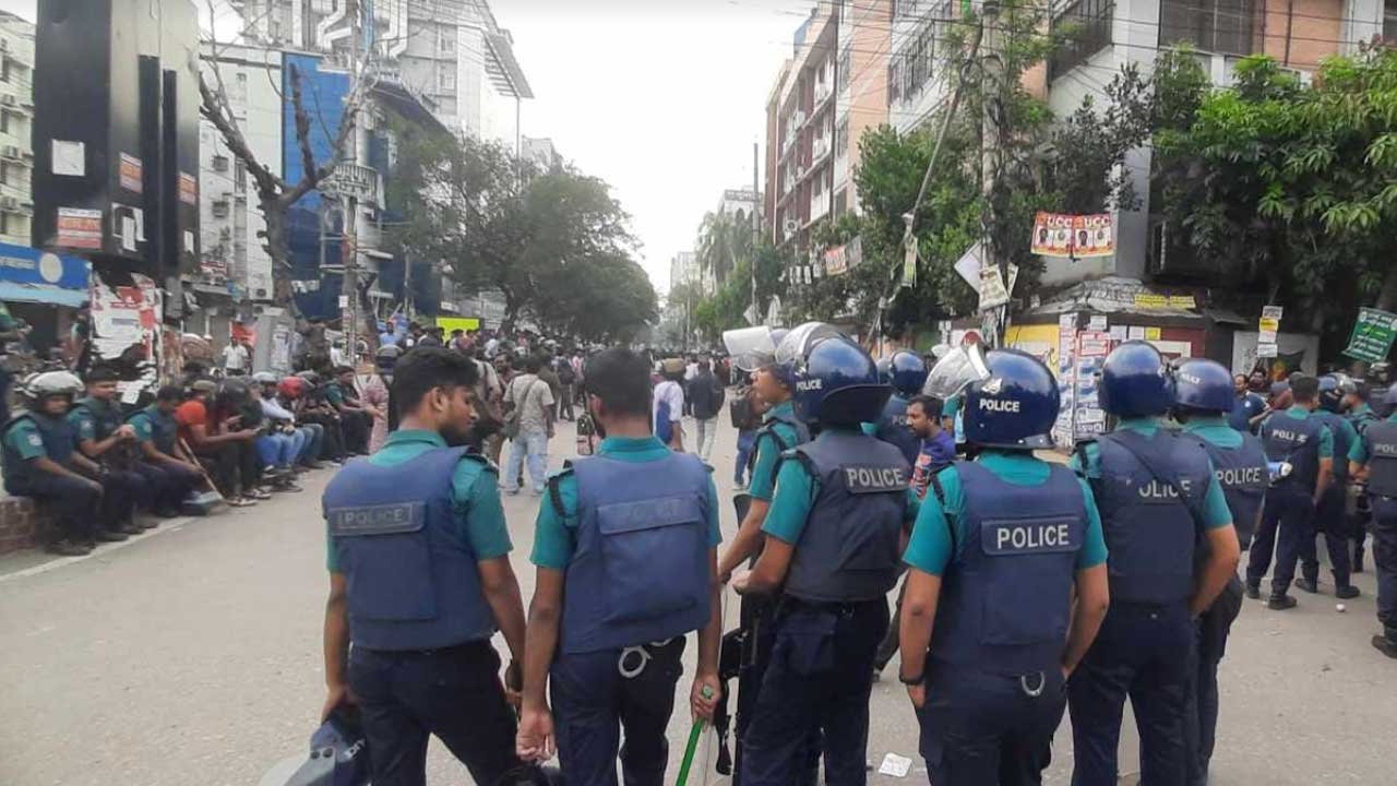 সরেজমিনে ঘুরে দেখা যায়, সায়েন্সল্যাব মোড়ে সিটি কলেজর সামনে অর্ধশতাধিক পুলিশ সদস্যরা অবস্থান নিয়েছেন। তারা সিটি কলেজে শিক্ষার্থীদের ঘিরে রেখেছেন। এর বিপরীতে ঢাকা কলেজের শিক্ষার্থীর অবস্থান নিয়েছেন সায়েন্সল্যাব মোড় এলাকায়। সেখানে আগুন ধরিয়ে বিক্ষোভ করতেও দেখা যায় শিক্ষার্থীদের। এতে করে নীলক্ষেত থেকে সায়েন্সল্যাব অভিমুখের সড়কে যানচলাচল বন্ধ হয়ে গেছে।