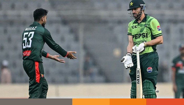 এ সময় উইকেটকিপার লিটন দাসকেও ক্ষুব্ধ প্রতিক্রিয়া দিতে দেখা যায়। পরিস্থিতি শান্ত করতে রিজওয়ান এগিয়ে আসেন। অন্যদিকে মিরাজও উত্তেজিত হয়ে পড়লে তাকে শান্ত করে বোলিং প্রান্তে নিয়ে যান অধিনায়ক নাজমুল হোসেন।