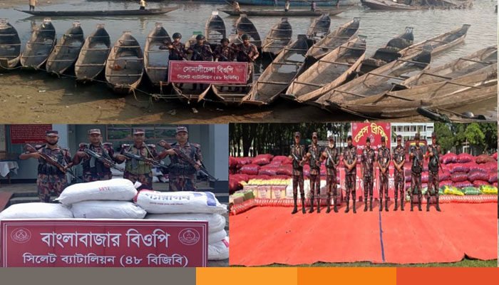 বৃহস্পতিবার (১৩ নভেম্বর) ও বুধবার (১২ নভেম্বর) সিলেট ব্যাটালিয়নের দায়িত্বাধীন কালাইরাগ, দমদমিয়া, সোনালীচেলা, বাংলাবাজার ও তামাবিল বিওপির সদস্যরা এসব অভিযান পরিচালনা করেন।
