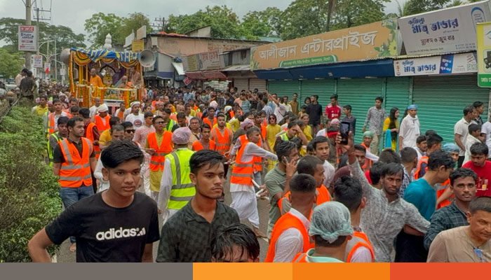 এর আগে ইসকন মন্দিরের আয়োজনে নগরীতে রথযাত্রা নিয়ে বর্ণাঢ্য শোভাযাত্রা অনুষ্ঠিত হয়। শোভাযাত্রা উদ্বোধন করেন বিএনপি চেয়ারপারসনের উপদেষ্টা ও সিলেট সিটি করপোরেশনের সাবেক মেয়র আরিফুল হক চৌধুরী। এ উপলক্ষে বিকেলে ইসকন সিলেটের যুগলটিলা মন্দির প্রাঙ্গণে অনুষ্ঠিত হয় রথযাত্রার উদ্বোধনী আলোচনা সভা। এতে প্রধান অতিথি ছিলেন বিএনপির চেয়ারপারসনের উপদেষ্টা খন্দকার আব্দুল মুক্তাদির । এসময় বক্তব্যে বলেন ‘ বাংলাদেশ একটি সাম্প্রদায়িক সম্প্রীতির দেশ। এখানে সব ধর্মের মানুষ নির্বিঘ্নে নিজ নিজ ধর্ম পালন করেন ‘