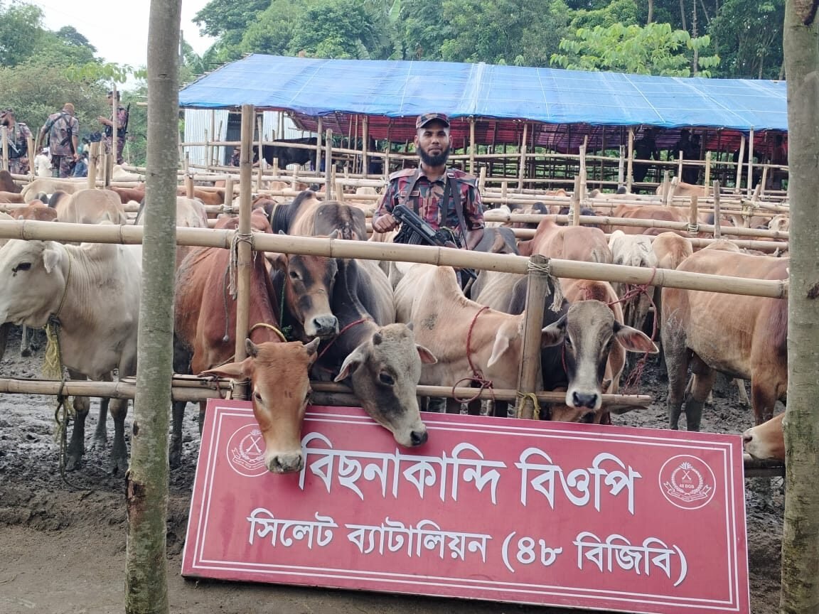 সিলেট সীমান্তে এযাবৎকালের সবচেয়ে বড় অবৈধ গরু-মহিষের চালান আটক করেছে বিজিবি