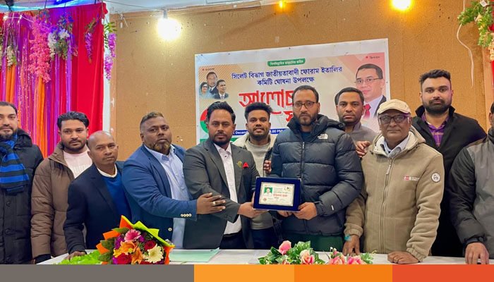 “প্রবাসীদের প্রথম ভোট ধানের শীষের পক্ষে হোক স্লোগানে” সিলেট বিভাগ জাতীয়তাবাদী ফোরাম বিএনপি ইতালির নবগঠিত কমিটি আনুষ্ঠানিকভাবে ঘোষণা করেন সংগঠনের প্রধান উপদেষ্টা ও অনুষ্ঠানের সভাপতিত্বকারি ফজলুর রহমান। নতুন কমিটি গঠনের পর সংগঠনের নবনির্বাচিত সভাপতি আরমান উদ্দিন স্বপন ও সাধারণ সম্পাদক মুসলিম মিয়া বলেন, সামনে অনুষ্ঠিতব্য জাতীয় সংসদ নির্বাচনে বিএনপিকে বিজয়ী করতে প্রবাসী নেতাকর্মীদের আরও সক্রিয় ও ঐক্যবদ্ধ ভূমিকা রাখতে সকলকে এগিয়ে আসার আহ্বান জানান।