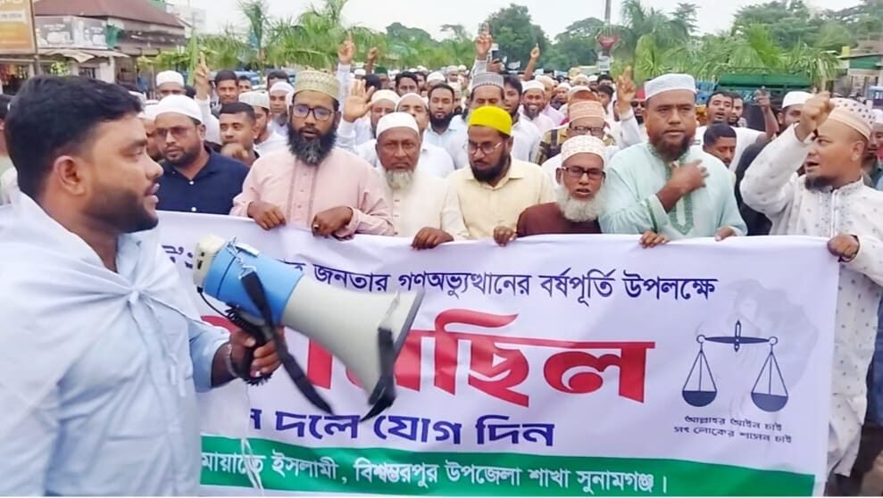 সুনামগঞ্জের বিশ্বম্ভরপুরে গণঅভ্যুত্থানের এক বছর পূর্তিতে জামায়াতের গণমিছিল