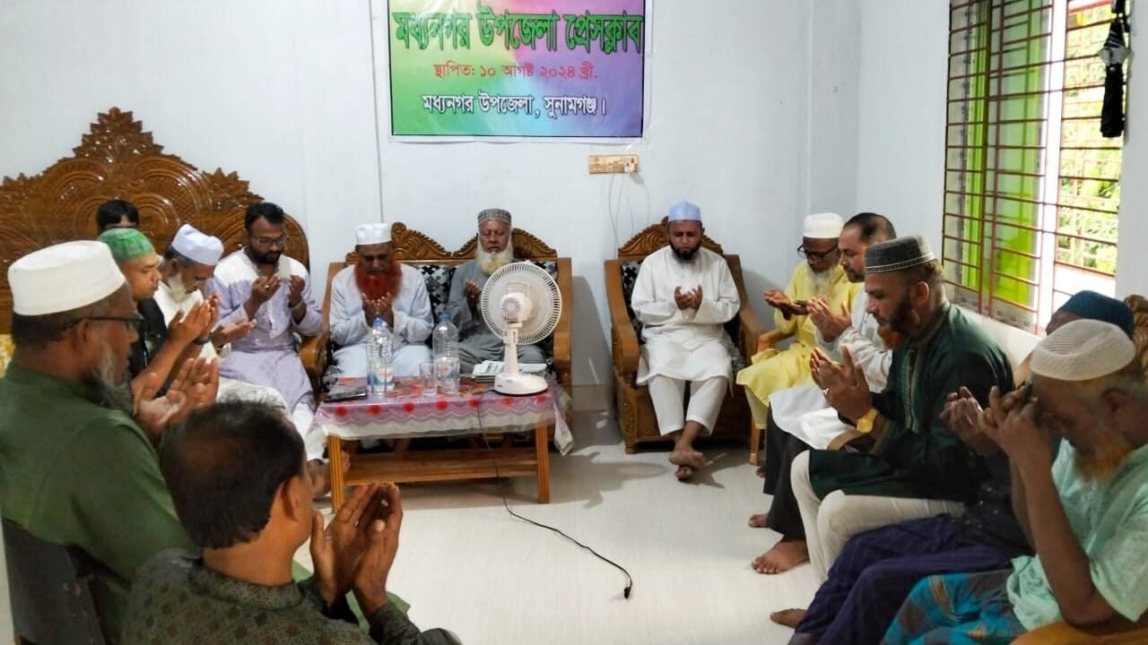 সুনামগঞ্জের নবগঠিত মধ্যনগর উপজেলা প্রেসক্লাবের উদ্যোগে ঢাকার উত্তরায় বিমান বাহিনীর প্রশিক্ষণ বিমান দুর্ঘটনায় মাইলস্টোন স্কুল এন্ড কলেজের নিহতদের ও জুলাই গণঅভ্যুত্থানে শহীদদের স্মরণে দোয়া ও মিলাদ মাহফিল অনুষ্ঠিত হয়েছে।