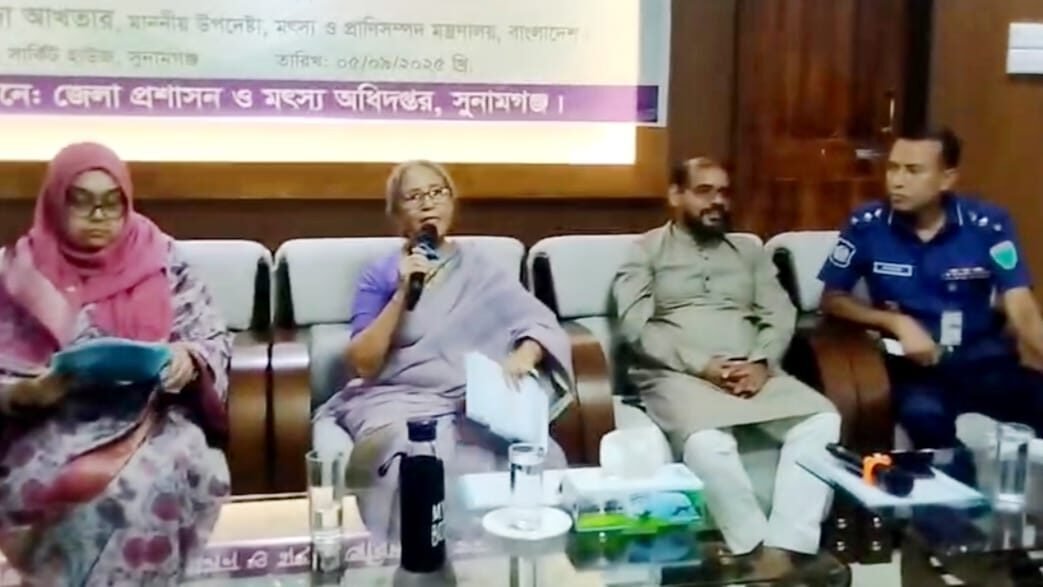 ৫ সেপ্টেম্বর শুক্রবার সন্ধা ৬ টায় সুনামগঞ্জ সার্কিট হাউস মিলনায়তনে হাওরের মৎস্য সম্পদ সংরক্ষণ ও বৃদ্ধির লক্ষে করনীয় নির্ধারণ সংক্রান্ত সভায় প্রধান অতিথির বক্তব্যে তিনি এসব কথা বলেন। সুনামগঞ্জের জেলা প্রশাসক ও জেলা ম্যাজিস্ট্রেট ড মোহাম্মদ ইলিয়াস মিয়ার সভাপতিত্বে ও অতিরিক্ত জেলা প্রশাসক সার্বিক সমর কুমার পালের সঞ্চালনায় উপস্থিত ছিলেন মৎস্য ও প্রাণিসম্পদ মন্ত্রণালয়ের যুগ্ম সচিব শায়লা ফেরদৌস, যুগ্ম সচিব আব্দুর সাত্তার অতিরিক্ত জেলা ম্যাজিস্ট্রেট মোহাম্মদ রেজাউল করিম, জেলা মৎস্য অফিসার সামসুল করিম, জেলা প্রাণী সম্পদ অফিসার, সুনামগঞ্জ জেলা প্রেস ক্লাব সভাপতি লতিফুর রহমান রাজু, সহ অন্যান্য কর্ম কর্তা গণ উপস্থিত ছিলেন।
