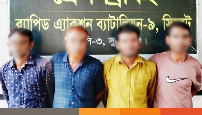 গ্রেফতারকৃতরা হলেন— কামাল উদ্দিন (৫৫), পিতা— মৃত আব্দুস সামাদ, বোরহান উদ্দিন (৩৫), পিতা— ফজর আলী, উভয়ই রঙ্গারচর গ্রামের বাসিন্দা।আলিম উদ্দিন (৪৫), পিতা— মৃত চেরাগ আলী, সাং—হরিণাপাটি, নওশাদ মিয়া (৪০), পিতা— মৃত ঈদু মিয়া, সাং— সিংপুরহাটি, থানা— সদর, জেলা— সুনামগঞ্জ।