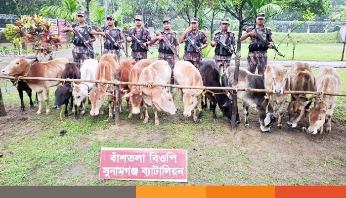 সুনামগঞ্জে বিজিবি”র অভিযানে ৩০ লক্ষ টাকার ভারতীয় অবৈধ গরু আটক
