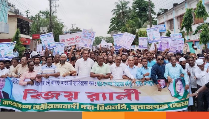 জুলাই গণ-অভ্যূথানের ধারাবাহিকতায় ছাত্র জনতার আন্দোলনে আওয়ামী ফ্যাসিবাদের পতন উপলক্ষ্যে সুনামগঞ্জ জেলা বিএনপির বিশাল বিজয় মিছিল অনুষ্ঠিত হয়েছে।