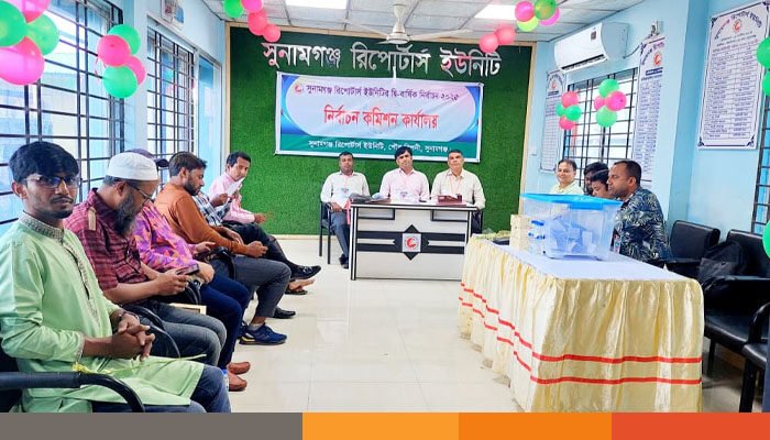 জেলার শীর্ষ সংগঠন ‘সুনামগঞ্জ রিপোর্টার্স ইউনিটি’র নির্বাচন অবাধ, সুষ্ঠু ও নিরপেক্ষভাবে পরিচালনা করতে তিনজন সদস্যের নির্বাচন কমিটি গঠন করা হয়। নির্বাচনে প্রধান নির্বাচন কমিশনার হিসেবে দায়িত্ব পালন করছেন সুনামগঞ্জ জেলার তথ্য অফিসের উপ পরিচালক শেখ ওয়ালী ফয়েজ, দৈনিক কালবেলার জেলা প্রতিনিধি একে কুদরত পাশা ও ইসলামগঞ্জ ডিগ্রি কলেজের সহকারী অধ্যাপক ফজলুল করিম সাইদ। এর আগে বুধবার ২০ আগস্ট নির্বাচনী তফসিল ঘোষণা করা হয়। শুক্রবার ২২ আগস্ট মনোনয়নপত্র ক্রয় শুরু হয়ে শেষ সময় পর্যন্ত ১৬ জন প্রার্থী মনোনয় পত্র দাখিল করেছেন। আজ রোববার ( ৩১ আগস্ট ) নির্বাচন অনুষ্ঠিত হয়।