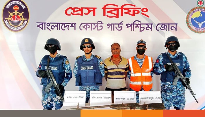 অস্ত্র ও গোলাবারুদসহ সুন্দরবনের দুর্ধর্ষ ডাকাত দুলাভাই বাহিনীর এক সদস্যকে আটক করেছে কোস্ট গার্ড। বৃহস্পতিবার (৬ নভেম্বর ২০২৫) সকালে কোস্ট গার্ড মিডিয়া কর্মকর্তা লেফটেন্যান্ট কমান্ডার সিয়াম-উল-হক জানান, গোপন তথ্যের ভিত্তিতে তারা জানতে পারেন যে, দুলাভাই বাহিনীর সদস্যরা ডাকাতির উদ্দেশ্যে খুলনার দাকোপ থানাধীন সুন্দরবনের কুমড়োকাঠি খাল সংলগ্ন এলাকায় অবস্থান করছে। তথ্যের ভিত্তিতে কোস্ট গার্ড বেইস মোংলার একটি দল সকাল ৬টায় বিশেষ অভিযান পরিচালনা করে। কোস্ট গার্ডের উপস্থিতি টের পেয়ে ডাকাতরা পালানোর চেষ্টা করলে ধাওয়া করে একজনকে আটক করা হয়।অভিযানে একটি একনলা বন্দুক, তিন রাউন্ড তাজা কার্তুজ ও সাত রাউন্ড ফাঁকা কার্তুজ উদ্ধার করা হয়েছে।