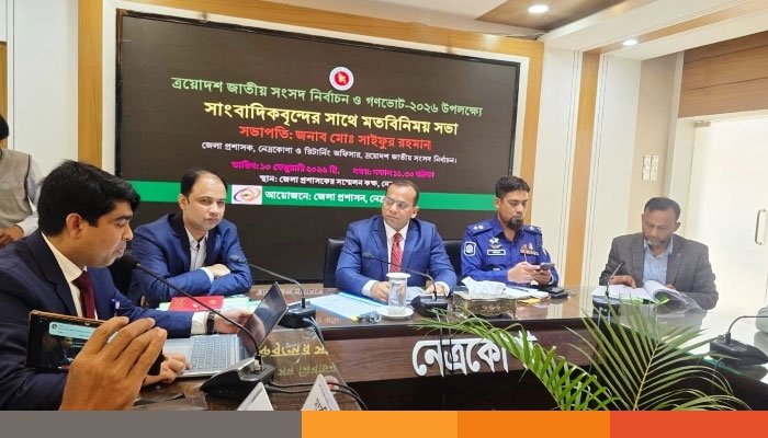 আসন্ন ত্রয়োদশ জাতীয় নির্বাচন ও গণভাটকে কেন্দ্র করে নেত্রকোনায় আইনশৃঙ্খলা পরিস্থিতি স্বাভাবিক রাখা এবং একটি অবাধ, সুষ্ঠু ও নিরপেক্ষ নির্বাচন উপহার দিতে ব্যাপক প্রস্তুতি গ্রহণ করেছে জেলা প্রশাসন। মঙ্গলবার (১০ ফেব্রুয়ারি) সংবাদ সম্মেলনে জেলা প্রশাসক ও পুলিশ সুপার নিজ নিজ দপ্তরের প্রস্তুতির কথা তুলে ধরেন।