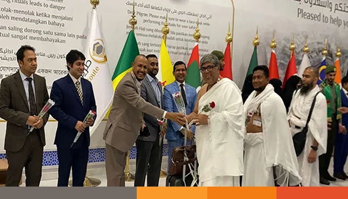 এসময় হজযাত্রীদের ফুল দিয়ে শুভেচ্ছা জানানো হয় এবং তাদের হাতে রিফ্রেশমেন্ট কিট তুলে দেওয়া হয়।