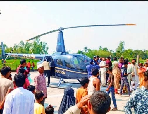 এদিকে, হেলিকপ্টারটি সাবুর চাতালে অবতরণ করতেই মুহূর্তে উৎসুক জনতার ভিড় জমে যায়। আর শিশু, বৃদ্ধ, নারী সবার হাতে মোবাইলে কেউ ভিডিও করছেন, কেউবা সেলফি তুলছেন।