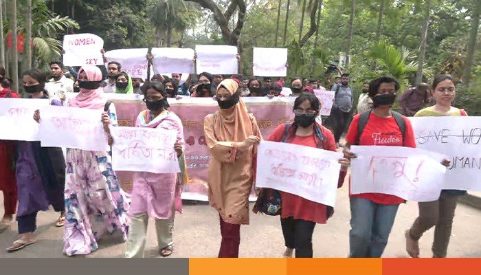 পরে মিছিল নিয়ে জড়ো হন অপরাজেয় বাংলার পাদদেশে। শিশু ধর্ষণ, নারী নির্যাতনসহ সাম্প্রতিক সময়ে ঘটে যাওয়া অপরাধে জড়িতদের দৃষ্টান্তমূলক শাস্তির দাবি তাদের।