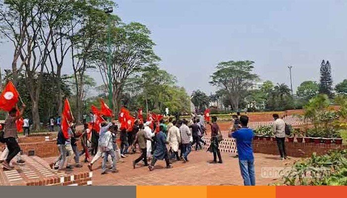 এদিন বেলা সোয়া ১১টার দিকে প্রায় ৩০ জনের একটি দল শহীদ বেদীতে শ্রদ্ধা জানিয়ে লাল পতাকা হাতে ফিরছিলেন। এ সময় তারা ‘জয় বাংলা, জয় বঙ্গবন্ধু’, ‘৭১ এর হাতিয়ার গর্জে উঠু আরেকবার’, ‘তুমি কে আমি কে বাঙালি বাঙালি’- ইত্যাদি স্লোগান দেন।