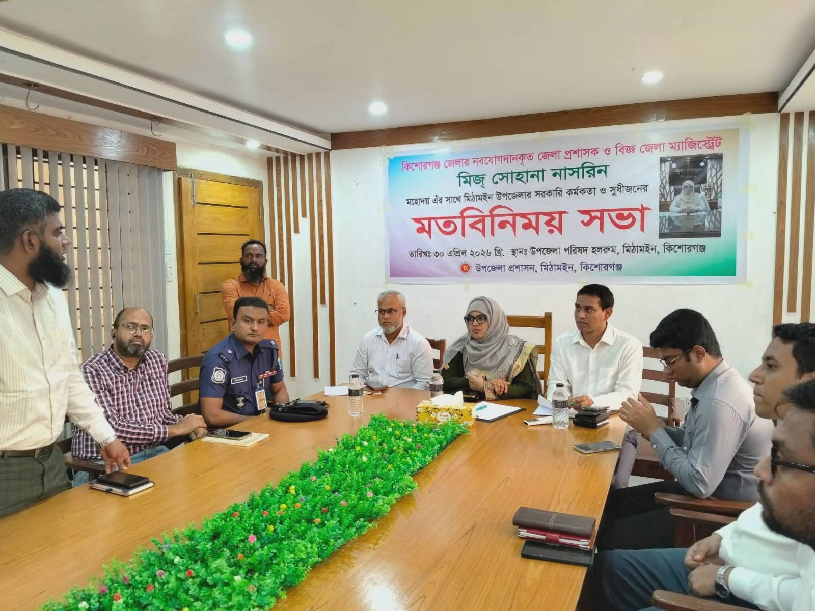 বৃহস্পতিবার (৩০ এপ্রিল) দিনভর তিনি হাওরাঞ্চলের বিভিন্ন এলাকা ঘুরে দেখেন এবং ক্ষতিগ্রস্ত প্রান্তিক কৃষকদের সাথে সরাসরি কথা বলে তাদের সমস্যার কথা শোনেন। পরিদর্শন শেষে তিনি উপজেলা প্রশাসনের আয়োজনে স্থানীয় বিভিন্ন দপ্তরের কর্মকর্তাদের সাথে এক গুরুত্বপূর্ণ মতবিনিময় সভায় মিলিত হন।মিঠামইন উপজেলা পরিষদ হলরুমে অনুষ্ঠিত এই সভায় জেলা প্রশাসক বেশ কিছু গুরুত্বপূর্ণ নির্দেশনা প্রদান করেন