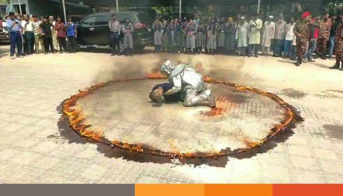 ফায়ার সার্ভিস ও সিভিল ডিফেন্সের চৌকস দল মহড়ায় বিভিন্ন উদ্ধার কৌশল ও অগ্নিনির্বাপণ পদ্ধতি সরাসরি প্রদর্শন করেন। এরমধ্যে উল্লেখযোগ্য ছিল- কীভাবে ফায়ার এক্সটিংগুইশার ব্যবহার করে দ্রুত আগুন নিয়ন্ত্রণে আনা যায়, তা হাতে-কলমে শেখানো হয়। রান্নার কাজে বা ড্রামে আগুন লাগলে আতঙ্কিত না হয়ে ভেজা ছালা, বস্তা বা কম্বল দিয়ে কীভাবে আগুন নিভিয়ে ফেলা যায়। ফায়ার প্রুফ স্যুট পরিধান করে জ্বলন্ত অগ্নিকুণ্ডের ভেতর থেকে আটকে পড়া ব্যক্তিকে কীভাবে নিরাপদে উদ্ধার করতে হয়, তার বাস্তব ডেমোনস্ট্রেশন দেওয়া হয়।
