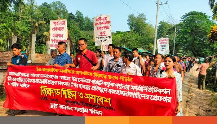 তারা আরও বলেন, ‘সমাবেশ থেকে, মিছিল থেকে বিভিন্ন সময়ে জুম্মদের ওপর উগ্র বাঙালিরা হামলা চালাচ্ছে। মানুষের ঘরবাড়ি পুড়িয়ে দেওয়ার ঘটনাও ঘটেছে। কিন্তু প্রশাসন এসব ঘটনার একটিরও বিচার করেনি। হামলাকারীরা অপরাধ করেও পার পেয়ে যাচ্ছে। পাহাড়িরা এখন নিরাপত্তাহীনতায় ভুগছেন। ঘরে-বাইরে কোথাও নিরাপদ নন, প্রতিনিয়ত আমাদের পাহাড়ি মা-বোনরা ধর্ষণ নিপীড়নের শিকার হচ্ছেন।’
