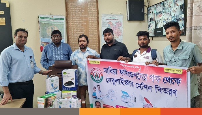 শনিবার (১৮ এপ্রিল) দুপুরে হাসপাতাল প্রাঙ্গণে আয়োজিত অনুষ্ঠানের মাধ্যমে এসব নেবুলাইজার মেশিন হাসপাতালের তত্ত্বাবধায়ক ও দায়িত্বরত চিকিৎসকদের হাতে আনুষ্ঠানিকভাবে হস্তান্তর করা হয়। এতে উপস্থিত ছিলেন সাবিয়া ফাউন্ডেশনের নির্বাহী সদস্য আব্দুল ওদুদ, সিফাত, আতিক রায়হান, মনিরুল ইসলাম, জাহিদসহ সংগঠনের অন্যান্য সম্মানিত সদস্যবৃন্দ।