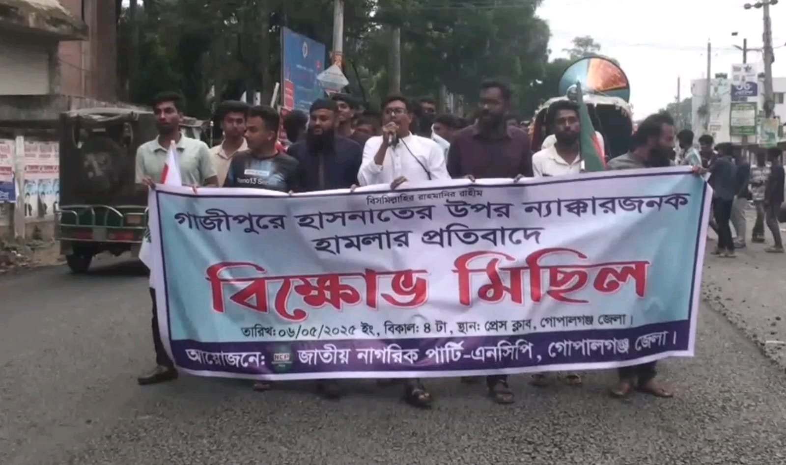 জাতীয় নাগরিক কমিটির মুখ্য সংগঠক (দক্ষিণাঞ্চল) হাসনাত আব্দুল্লাহ’র উপর ন্যাক্কারজনক হামলার প্রতিবাদে গোপালগঞ্জে মানববন্ধন ও বিক্ষোভ মিছিল অনুষ্ঠিত হয়েছে।