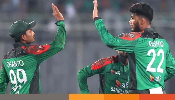 ছোট লক্ষ্য তাড়ায় উড়ন্ত শুরু পায় ওয়েস্ট ইন্ডিজ। উদ্বোধনী জুটিতে ৫১ রান যোগ করে তারা। ২৭ রান করা আলিক আথানজেকে লেগ বিফোরের ফাঁদে ফেলেন রিশাদ হোসেন। উদ্বোধনী জুটি ভাঙার পরই ক্যারিবিয়ানদের রানের লাগাম টেনে ধরে বাংলাদেশ।
